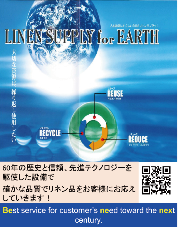 創業から60年、弛まぬ努力と挑戦を礎に、リネンサプライ業を通じて高い品質と魅力ある商品・サービスを提供し、社会に貢献してきました。これからも社員一丸となり、お客様が何を求め、どうすれば喜んでくださるかを考え、一人でも多くのお客様から信頼を得られる企業でありたい。そして、常に高い品質と魅力ある商品・サービスを提供し、お客様のご要望にいつでもお応えできる企業として成長していく所存です。